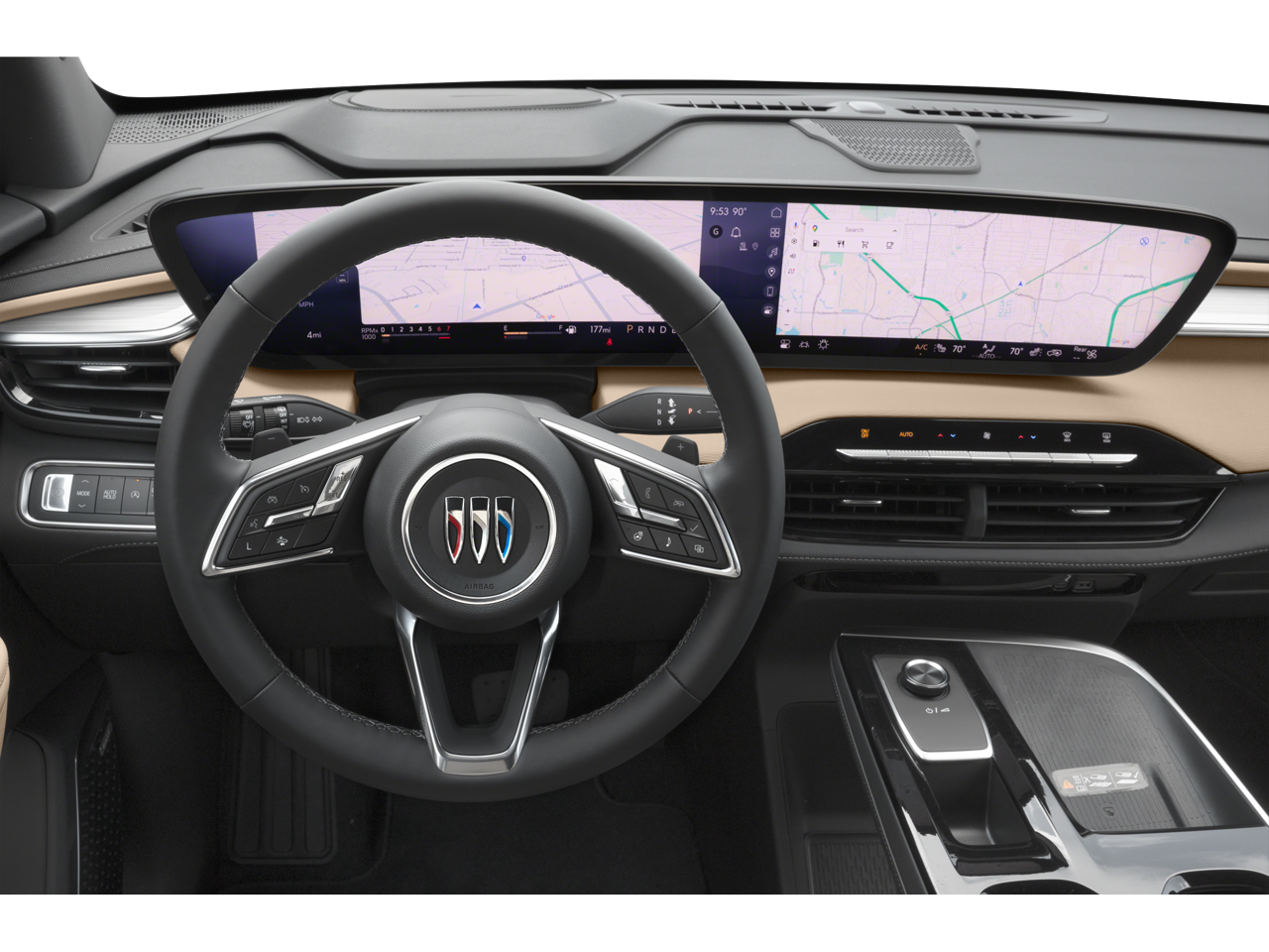 - Infotainment Center, customizable ultrawide 30" diagonal screen with Google built-in. Provides navigation capability, connected apps, personalized profiles for each driver's settings, Natural Voice Recognition and Phone Integration for Wireless Apple CarPlay/Wireless Android Auto for compatible phones