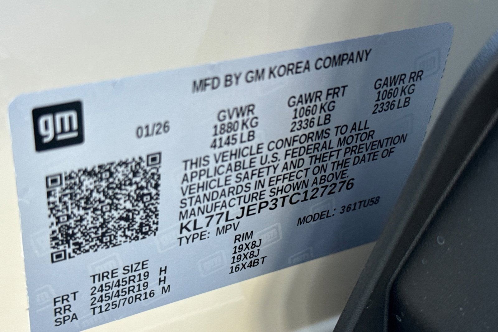 - Tires, 245/45R19 all-season, blackwall