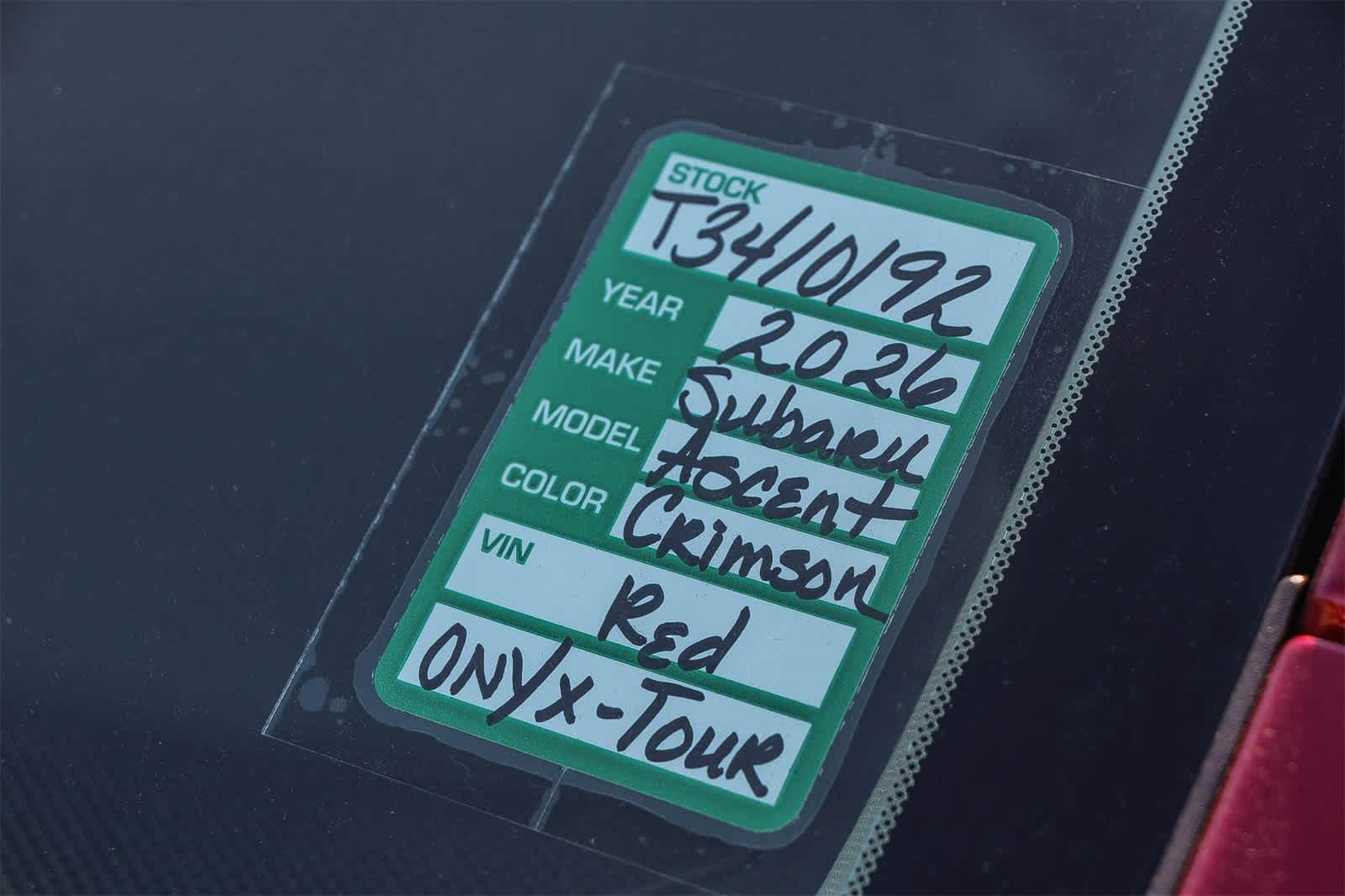 This 2026 Subaru Ascent Onyx Edition Touring is finished in the Crimson Red Pearl exterior paint and Slate Black W/Blk Stitch Leather interior.