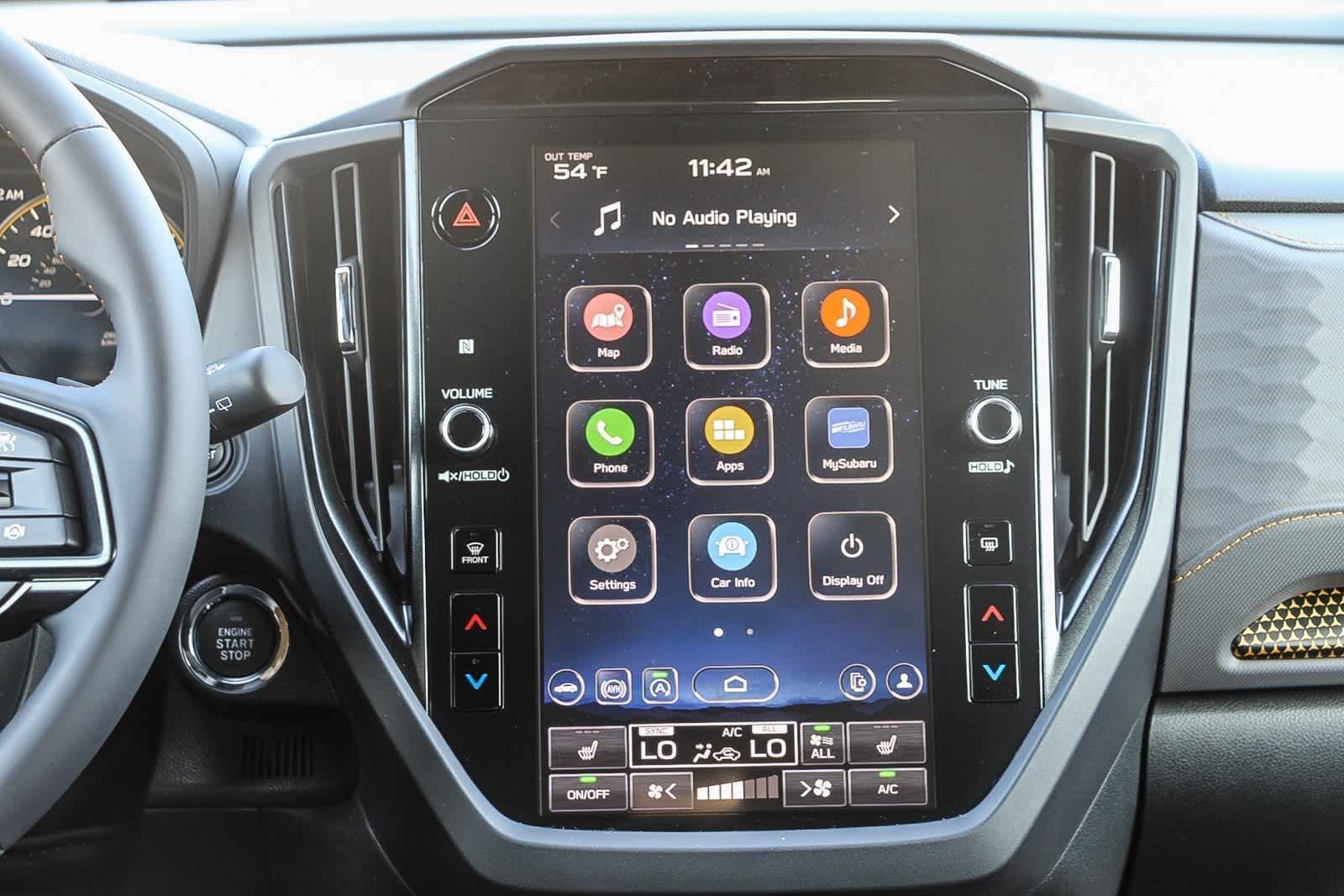 - Radio: Subaru 11.6" Multimedia Plus System -inc: valet mode, integrated center information display, AM/FM stereo HD Radio, multi-touch gesture high resolution display screen, voice activated controls, Bluetooth® audio streaming and hands-free phone connectivity w/SMS text messaging (refer to Subaru.com for cellphone compatibility), iPod control capability, smartphone integration: Android Auto and Apple CarPlay w/full screen view and wireless connection, SiriusXM satellite radio w/360L (free 4-month trial subscription included), USB and Over The Air (OTA) audio system update, steering wheel controls, 6 speakers, 3.5mm auxiliary input jack and roof mounted audio and satellite antenna