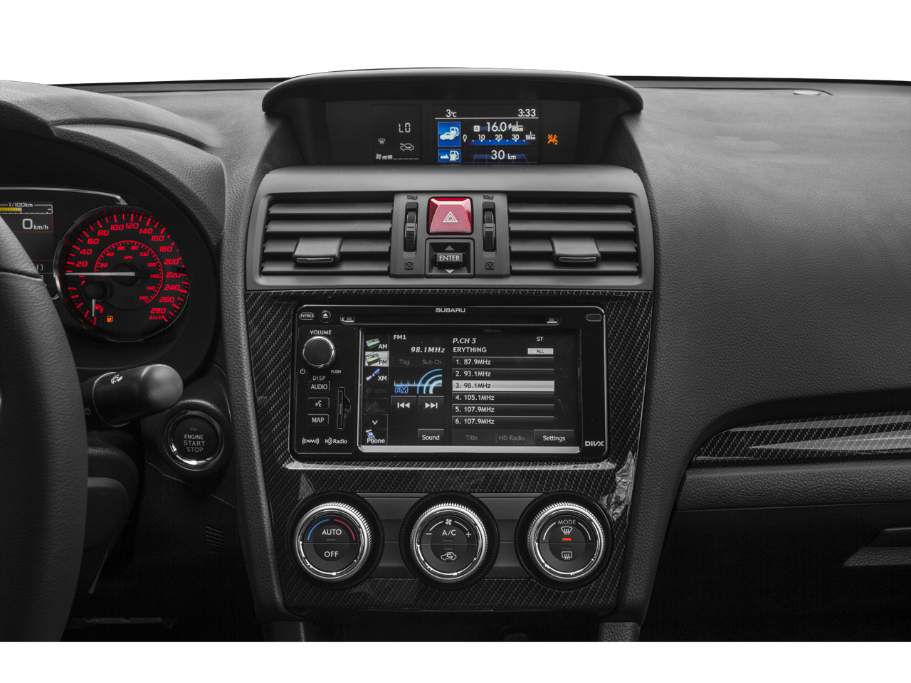- Interior Trim -inc: Simulated Carbon Fiber Instrument Panel Insert, Metal-Look Door Panel Insert, Metal-Look Console Insert and Chrome/Aluminum Interior Accents