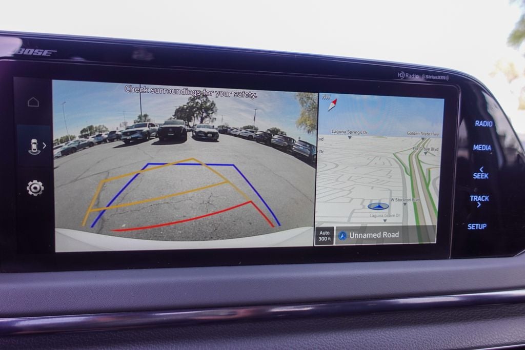 - Radio: AM/FM/MP3/HD/SiriusXM Display Audio w/Nav -inc: 10.25" color touchscreen, Bose premium audio w/12 speakers (1 center channel, 2 dash, 2 front tweeters, 4 door mounted, 2 rear mounted speakers plus 1 rear mounted subwoofer), dynamic voice recognition, integrated Bluetooth®, Blue Link connected car system, Apple CarPlay, Android Auto, USB, diversity antenna for navigation and HERE HD traffic