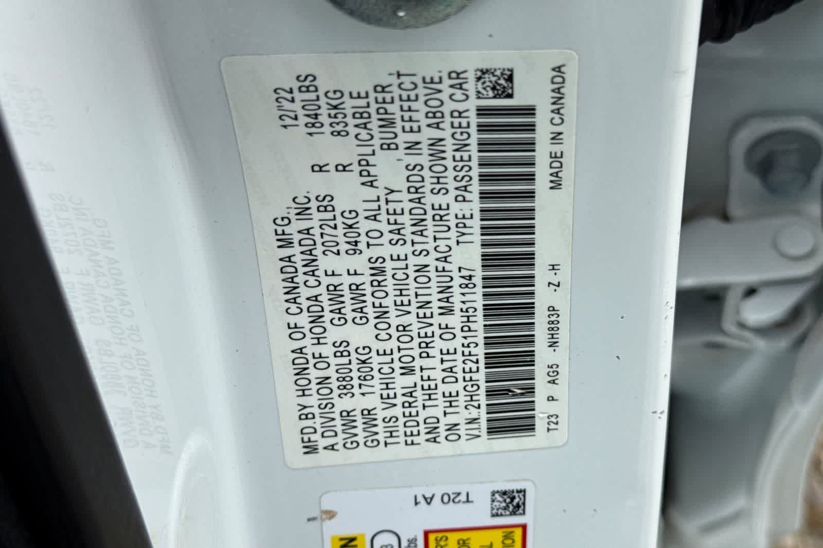 VIN: 2HGFE2F51PH511847