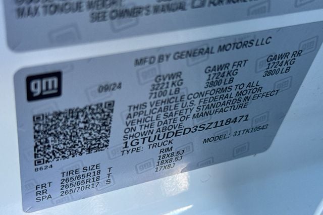 - Front Tire Size: 265/65R18SL