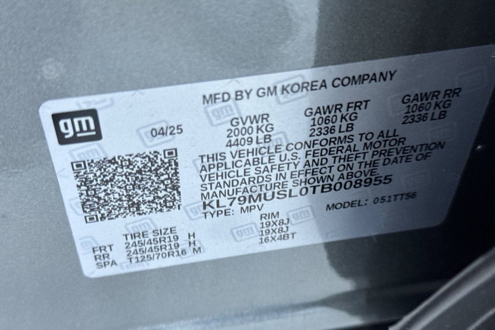 VIN: KL79MUSL0TB008955