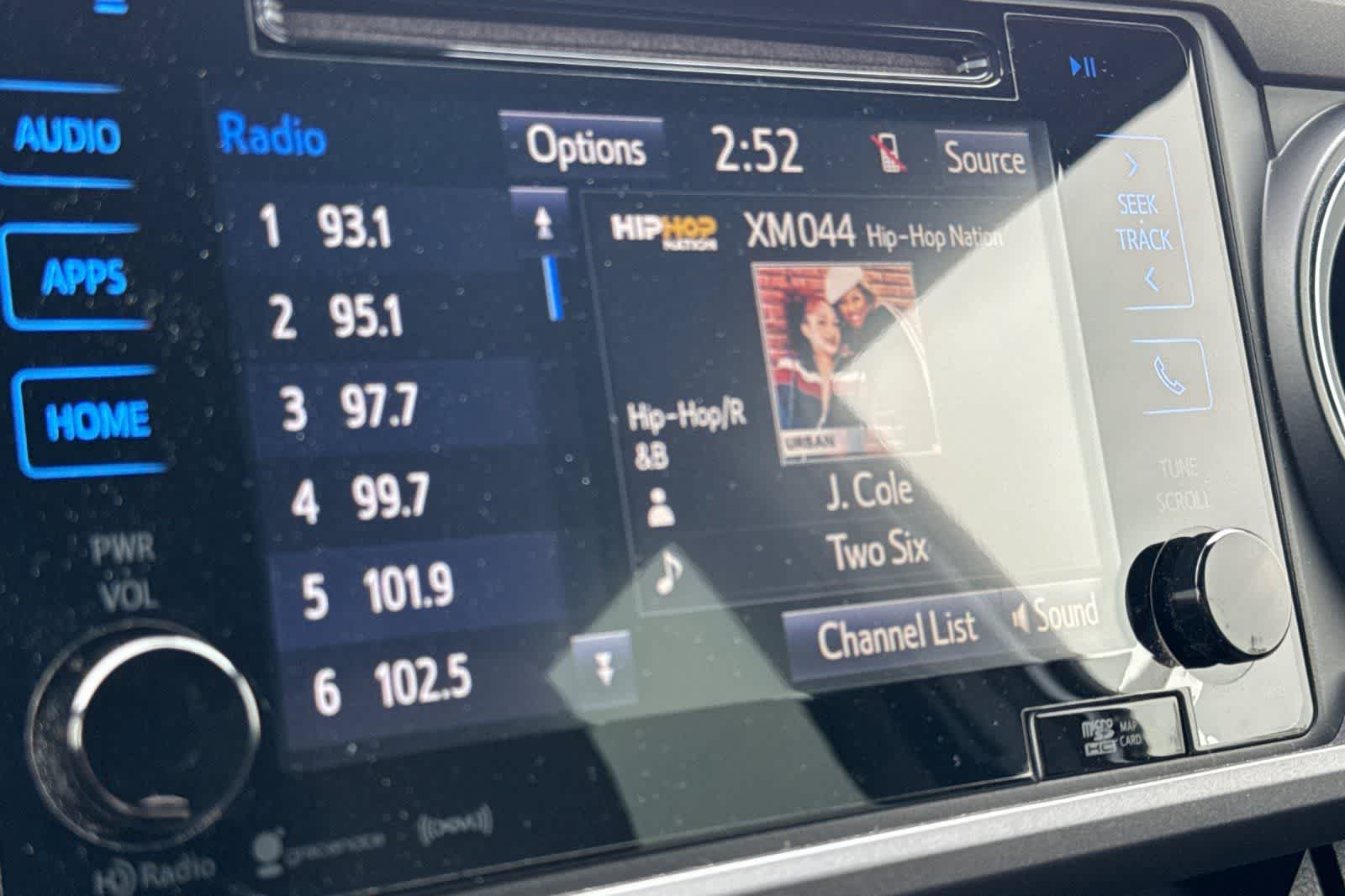 - Radio: Entune Premium w/AM/FM/CD/Nav/App Suite -inc: 6 speakers, 7" high-resolution touch-screen display w/split screen, auxiliary audio jack, USB 2.0 port, iPod connectivity and control, Siri eyes free, advanced voice recognition, Bluetooth® hands-free phone capability, phone book access and music streaming, cache radio, HD Radio, HD predictive traffic and doppler weather overlay, SiriusXM satellite radio w/complimentary SiriusXM All Access 90-day trial subscription included, Gracenotes album cover art and integrated backup camera display, Entune App Suite, Destination Search, iHeartRadio, MovieTickets.com, OpenTable, Pandora, Yelp, Facebook Places and Slacker Radio