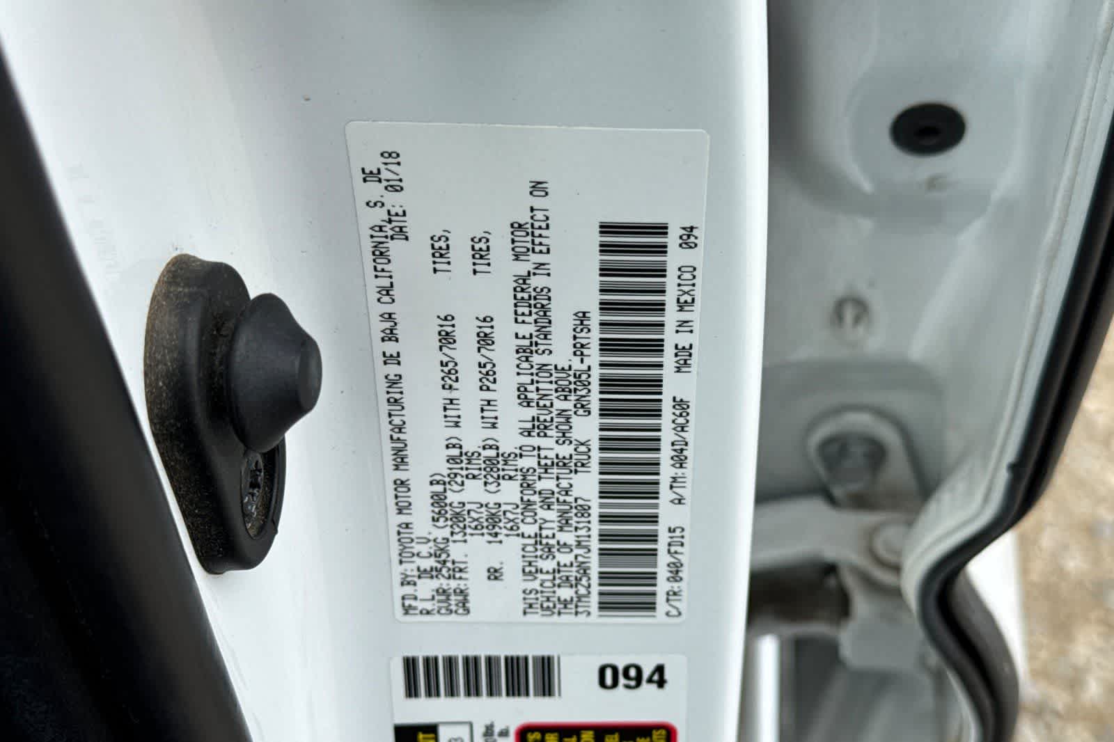 This 2018 Toyota Tacoma TRD Off-Road is finished in the Super White exterior paint and Cement Gray Cloth interior.