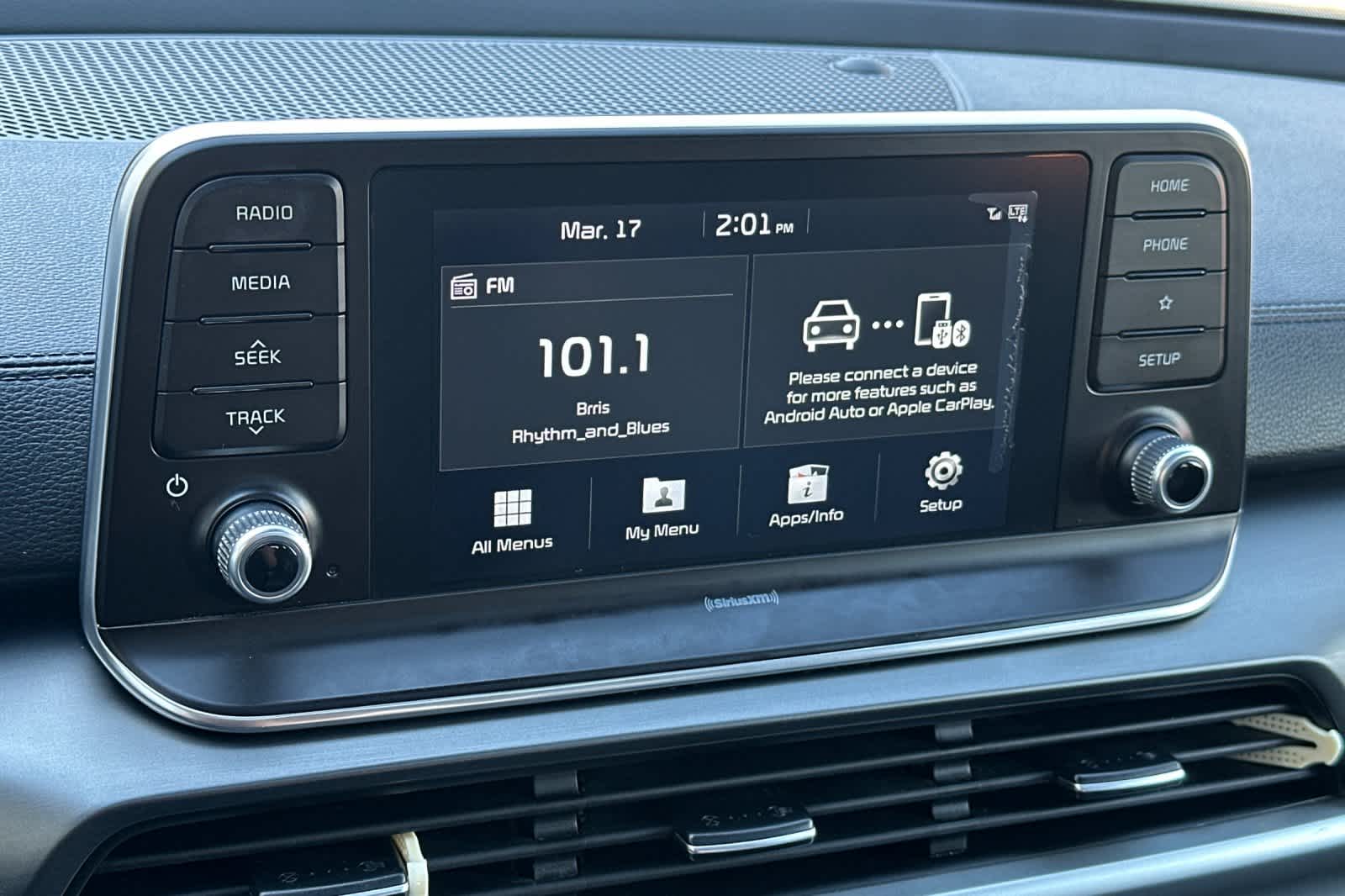 - Radio: AM/FM/MP3/SiriusXM Audio System -inc: UVO link infotainment system, w/smartphone integration for remote commands and remote vehicle status, 6-speaker, support for Android Auto and Apple CarPlay, 8" touch-screen color display, a total of 5 USB charge ports in all rows and Bluetooth® wireless connectivity w/voice recognition (a Bluetooth® enabled cell phone is required to use Bluetooth® wireless technology), Note: Remote's climate feature is not available on LX and S trim levels due to manual HVAC system