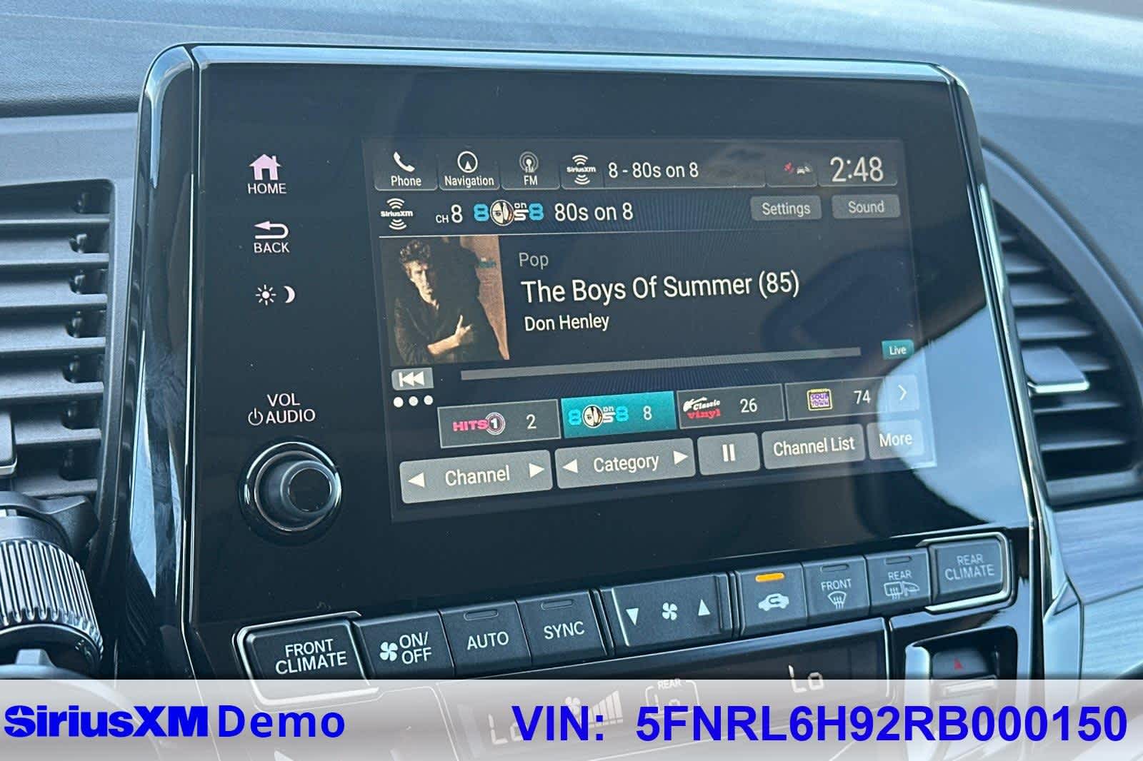 - Radio: 500-Watt AM/FM/HD Premium Audio System -inc: 11 speakers including subwoofer, 8" color touchscreen display, Bluetooth® HandsFreeLink, Bluetooth® streaming audio, MP3/auxiliary input jack, Radio Data System (RDS), Speed-Sensitive Volume Compensation (SVC), CabinControl remote compatibility, HondaLink, Apple CarPlay compatibility, Android Auto compatibility, SiriusXM, SMS text message function, 4 2.5-amp USB charging ports, 2.5-amp USB smartphone/audio interface, CabinTalk in-car PA system, advanced rear entertainment system w/10.2-inch high-resolution screen, Blu-Ray Player, built-in streaming apps and wireless headphones (2), HDMI interface, Honda Satellite-Linked Navigation System w/voice recognition and Honda HD digital traffic, CabinWatch rear seat monitor, HondaLink subscription services, Wi-Fi hotspot capability illuminated steering wheel-mounted audio controls and body-colored fin-type roof-mounted antenna, All SiriusXM services require a subscription, sold separately by SiriusXM after the trial period, If you decide to continue service, the plan you choose will automatically renew at the then-current rates, Fees and taxes apply, See the SiriusXM Customer Agreement & Privacy Policy at www.siriusxm.com for full terms and how to cancel, which includes calling 1-866-635-2349, Available in the 48 contiguous U.S, and D.C, Some services and features are subject to device capabilities and location restrictions, All fees, content and features are subject to change, SiriusXM, Pandora and all related logos are trademarks of Sirius XM Radio Inc, and its respective subsidiaries, The Honda Satellite-Linked Navigation System functions in the United States (not including territories, except Puerto Rico) and Canada, Honda HD Digital Traffic service is only available in the United States, except Alaska, Please see your Honda dealer for details